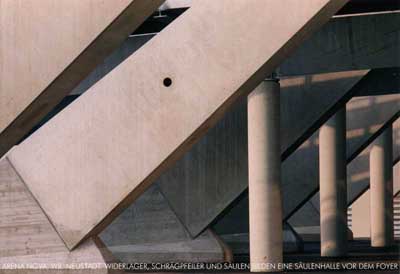 Die Mehrzweckhalle in einem neu erschlossenen Teil der Stadt Wiener Neustadt ist der Kern eines zukünftigen Kultur-, Messe-, und Sportzentrums. Bedeutende sportliche und nichtsportliche Veranstaltungen bestätigen das schon jetzt, wobei die geplante Eignung für große Messeveranstaltungen zu erwähnen ist. Die Erschließung von außen, sogar auf Hallenniveau als auch auf den Umgriff, von dem aus die Zuschauerplätze erreicht werden, nimmt Bezug auf die multifunktionale Nutzung. Das Konzept, für den Normalbedarf lediglich zwischen der Sportfläche und dem Umgriff Sitzplätze vorzuhalten und bei höherem Bedarf mobile Tribünen auf dem Umgriff einzusetzen, ermöglicht zusätzliche sportliche Nutzungen dieser Fläche und eine Vergrößerung der Gesamtfläche bei nichtsportlichen Veranstaltungen. Dies wird begrüßt. |